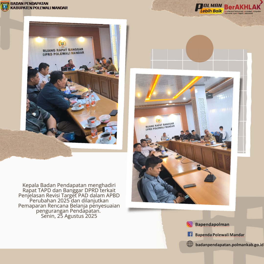 Kepala Badan Pendapatan Alimuddin, S.Pd.,M.Si memimpin Rapat yang digelar di Ruang Pola Kantor Bupati Polewali Mandar terkait Penyusunan Target Pendapatan dan Pemenuhan Anggaran Belanja untuk mencapai...
